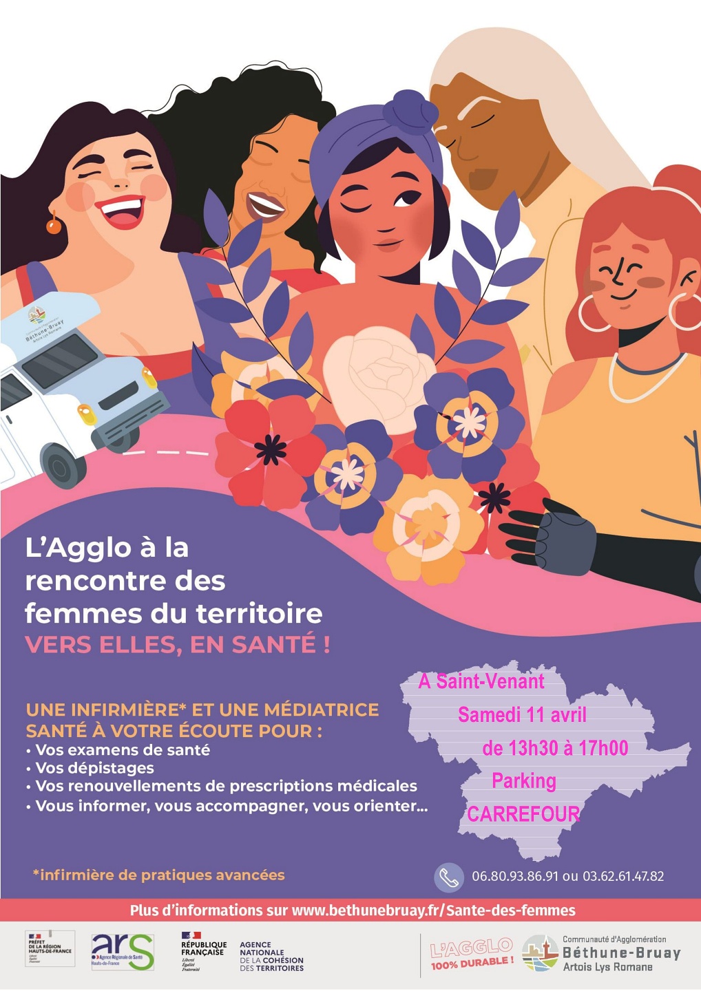 Une action d’information et de prévention dédiée à la santé des femmes est annoncée à SAINT-VENANT, grâce à un véhicule mobile qui se déplace directement dans les communes, dans le cadre du dispositif "Vers elles, en santé !" porté par l’agglomération BETHUNE-BRUAY, Artois Lys Romane (C.A.B.B.A.L.R.)